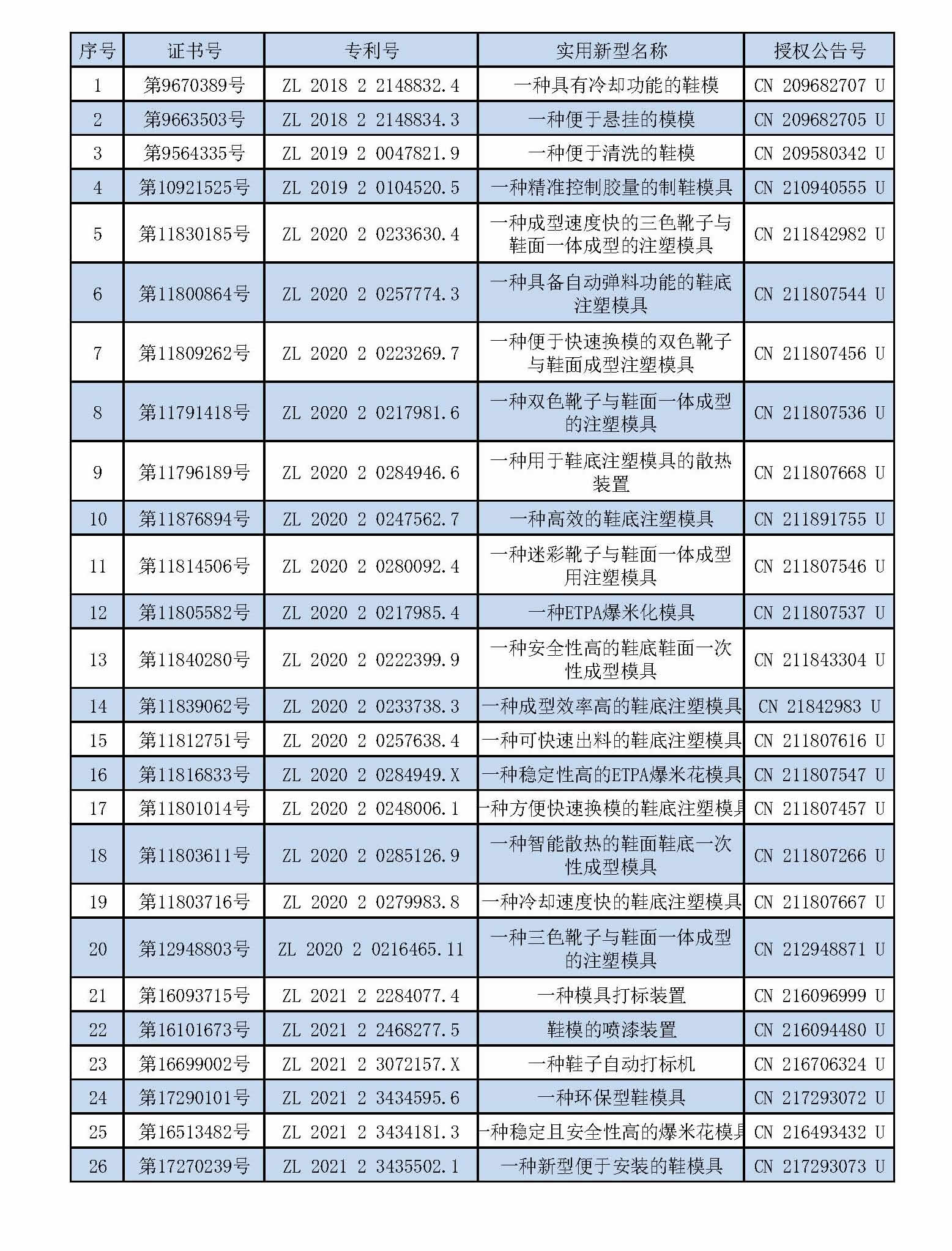 公司自成立以來,始終堅(jiān)持以客戶需求為導(dǎo)向,依靠科技求發(fā)展,高度重視并且持續(xù)加大研發(fā)投入,組建技術(shù)中心,引進(jìn)先進(jìn)的技術(shù)開發(fā)設(shè)備:CNC高精度數(shù)控機(jī)床、光固化3D打印機(jī)設(shè)備、進(jìn)口平面大銑床,精密平面雕刻機(jī),單/雙頭放電機(jī)等各類高精度設(shè)備等近200多臺。通過多年的努力,目前公司已取得20項(xiàng)專利,并實(shí)現(xiàn)了專利成果轉(zhuǎn)化,為公司開拓市場,提高核心競爭力,提供了強(qiáng)有力的科技支撐。 公司以獨(dú)特的生產(chǎn)工藝和雄厚的開發(fā)力量,贏得了廣大制鞋企業(yè)的支持和信賴,產(chǎn)品目前主要銷往莆田、泉州、廈門、廣東省等地方,主要合作伙伴有李寧、迪卡儂、巴拉巴拉、銳步、斯凱奇、K.SWISS等世界知名品牌。協(xié)信以服務(wù)現(xiàn)有客戶、研發(fā)新型鞋類技術(shù)或非鞋類產(chǎn)品為主,致力于給所有中外客戶提供專業(yè)的品質(zhì)、高效的交期和一流的服務(wù)!